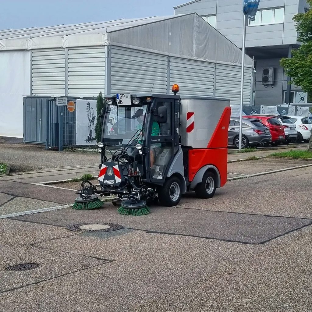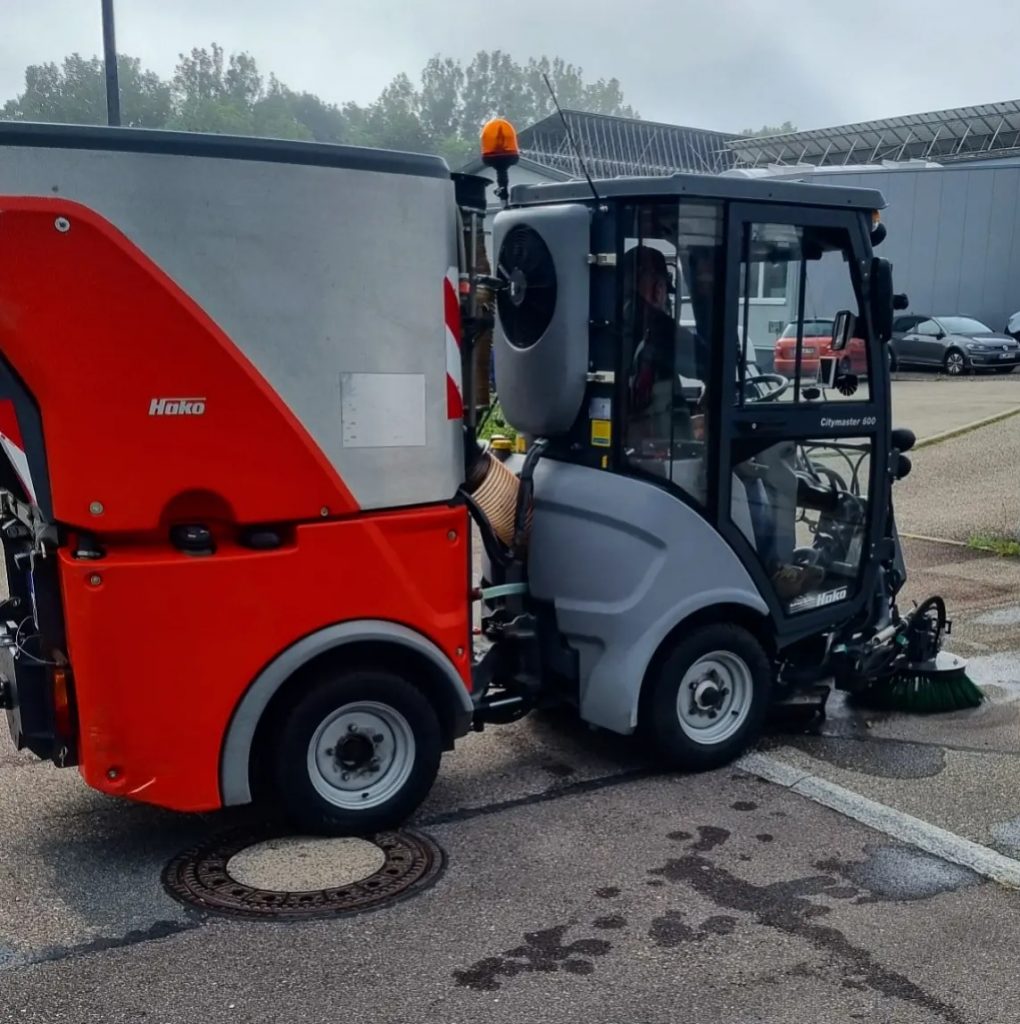 Größere Flächen reinigen wir mithilfe unserer Hako-Kommunalkehrmaschine.